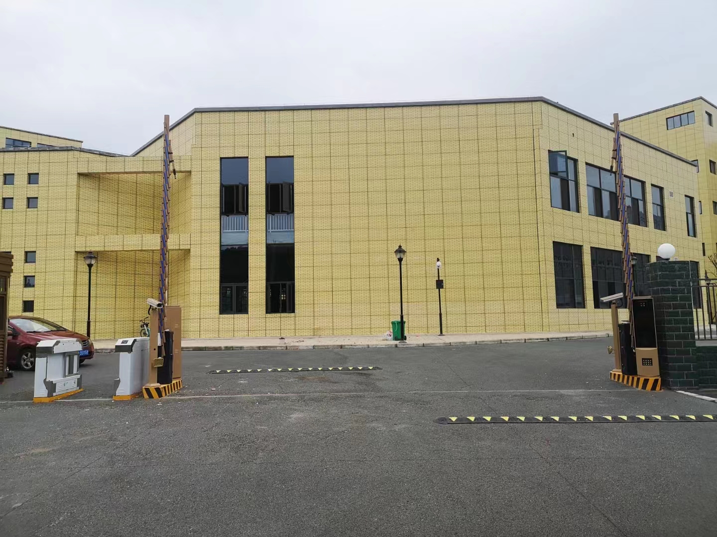 浙江紹興海南化纖公司智慧停車場案例圖,金色數字道閘+FY車牌識別